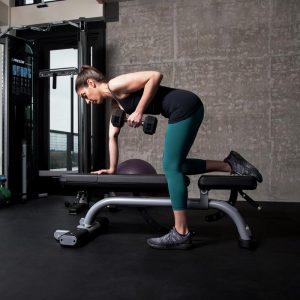 Covered wheels and padded handle make the bench easy to move. Rubber feet ensure that the bench will stay in place when it is put back down.