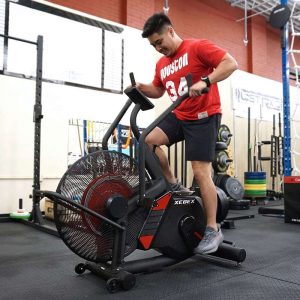 There are many benefits of including variable resistance in a standard air bike as it allows athletes to train for strength, cardiovascular and multiple combinations between the two. Users can better achieve specific goals (i.e. general heath improvements, weight loss, muscle tone) due to the wide range of resistance provided by the added magnetic resistance as well as the natural resistance from the flywheel as you increase RPMs. Additionally, this equipment allows users to gradually increase the intensity of their workout as they progress in their fitness journey.