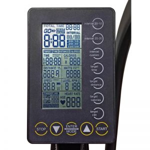 Our large console display gives users an easy way to measure performance and track progress. On one screen, you can see 8 different key measurements: Total Time, Work Time, Calories, Distance, Watts, Speed, RPM, and Heart Rate. Everything you need in one, easy-to-read console with the ability to setup Interval Training, Target Training, Heart-Rate Training, and more. 5k Chest Belts are compatible.